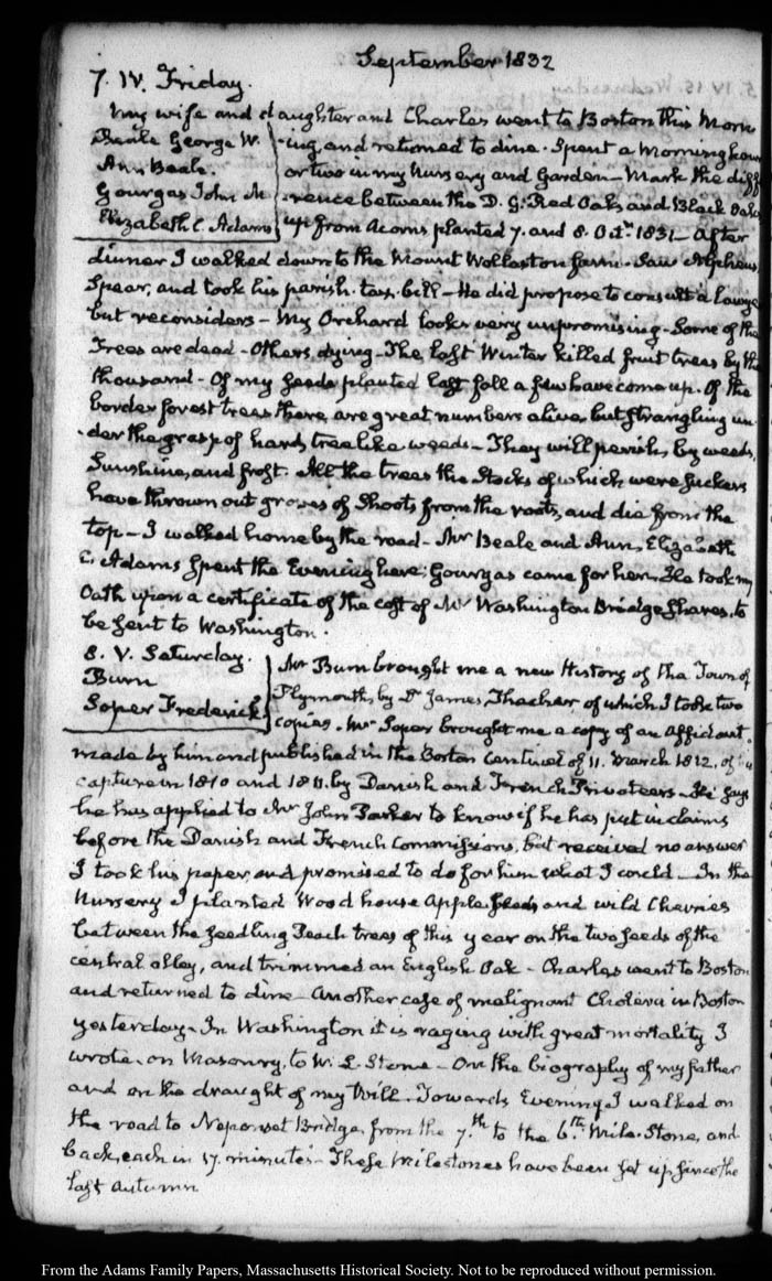 View full, authoritative transcriptions with page images of the diaries at John Quincy Adams Digital Diary part of the Primary Source Cooperative at the MHS.
