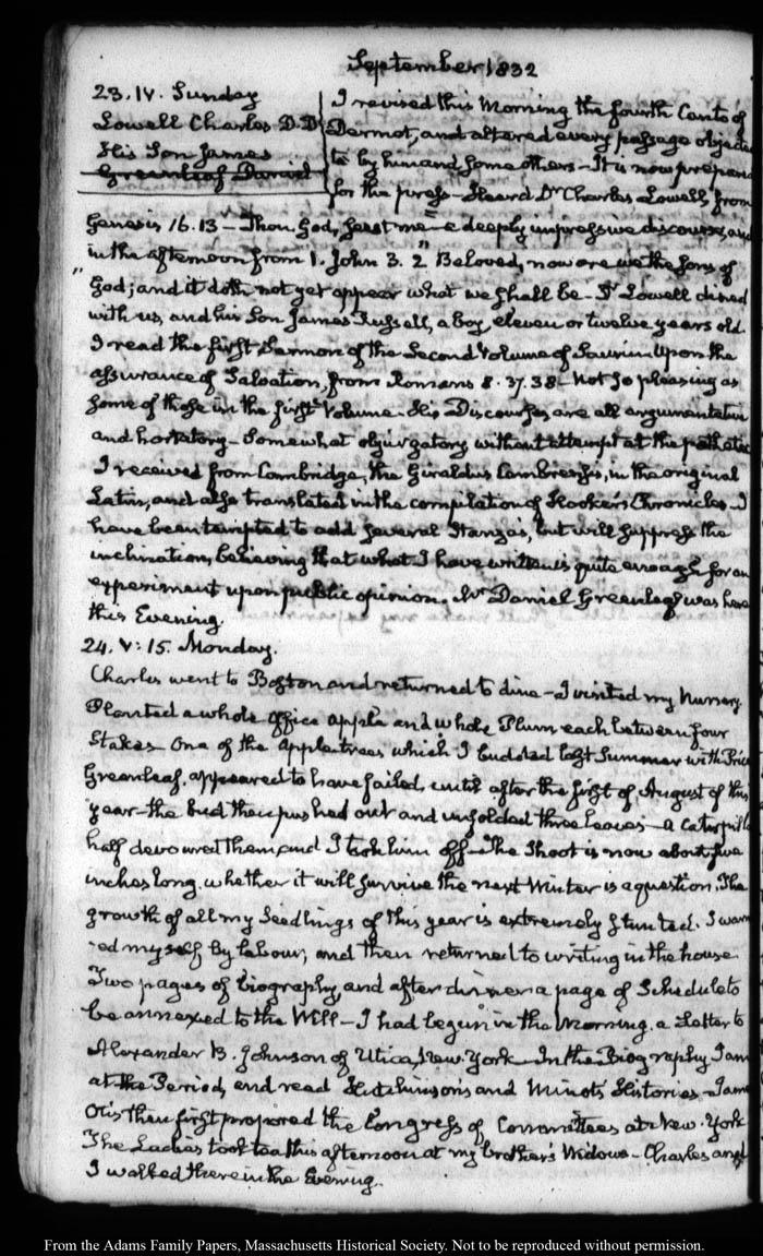View full, authoritative transcriptions with page images of the diaries at John Quincy Adams Digital Diary part of the Primary Source Cooperative at the MHS.