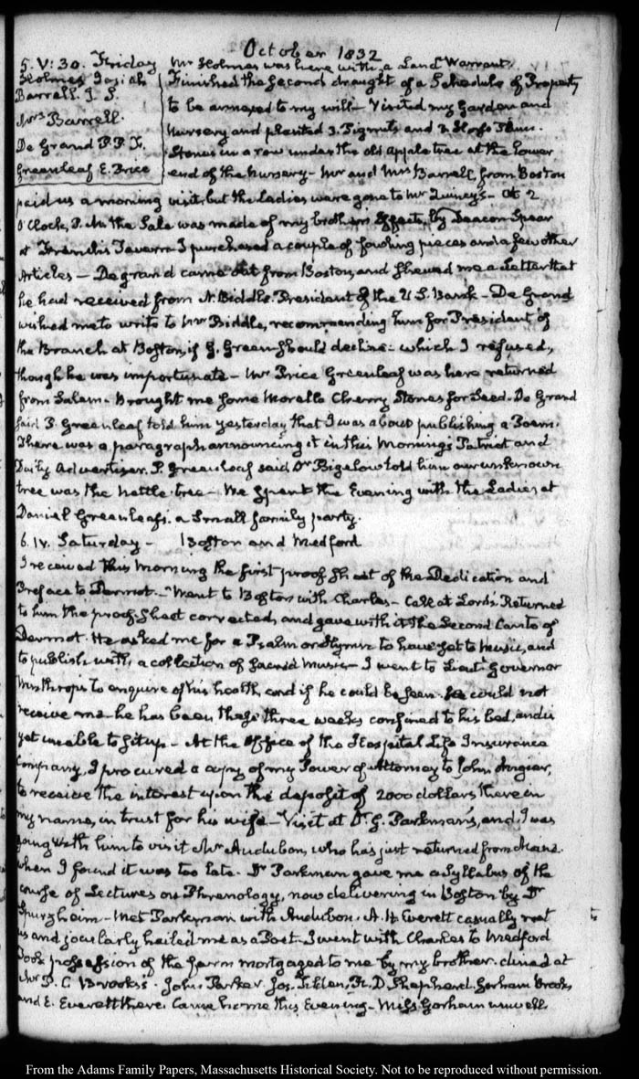 View full, authoritative transcriptions with page images of the diaries at John Quincy Adams Digital Diary part of the Primary Source Cooperative at the MHS.