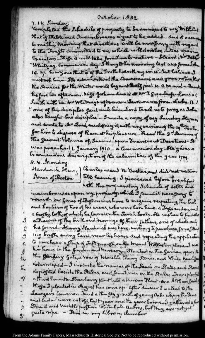 View full, authoritative transcriptions with page images of the diaries at John Quincy Adams Digital Diary part of the Primary Source Cooperative at the MHS.