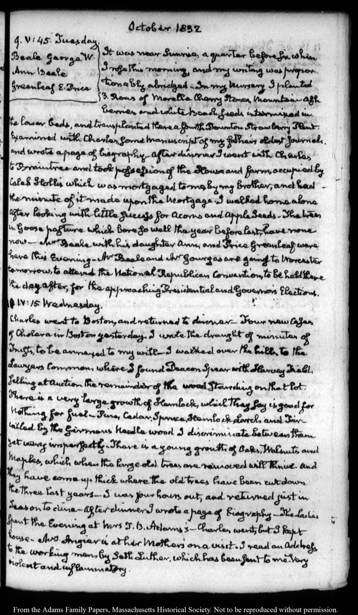 View full, authoritative transcriptions with page images of the diaries at John Quincy Adams Digital Diary part of the Primary Source Cooperative at the MHS.