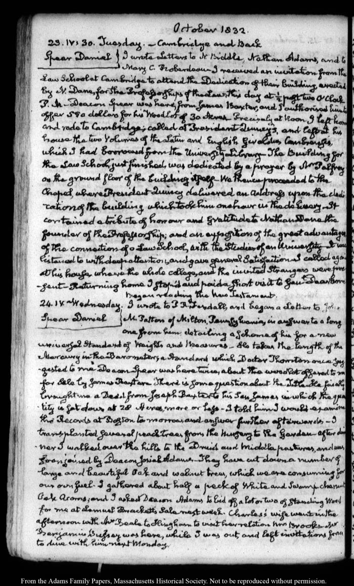 View full, authoritative transcriptions with page images of the diaries at John Quincy Adams Digital Diary part of the Primary Source Cooperative at the MHS.
