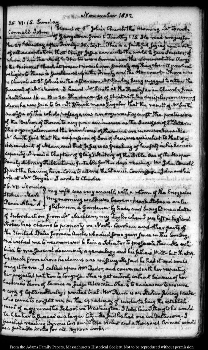 View full, authoritative transcriptions with page images of the diaries at John Quincy Adams Digital Diary part of the Primary Source Cooperative at the MHS.