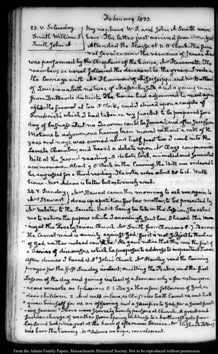 View full, authoritative transcriptions with page images of the diaries at John Quincy Adams Digital Diary part of the Primary Source Cooperative at the MHS.