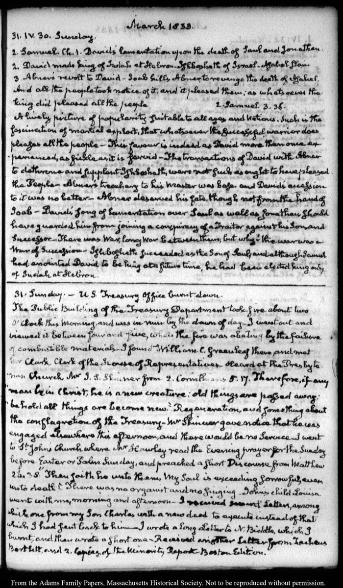 View full, authoritative transcriptions with page images of the diaries at John Quincy Adams Digital Diary part of the Primary Source Cooperative at the MHS.