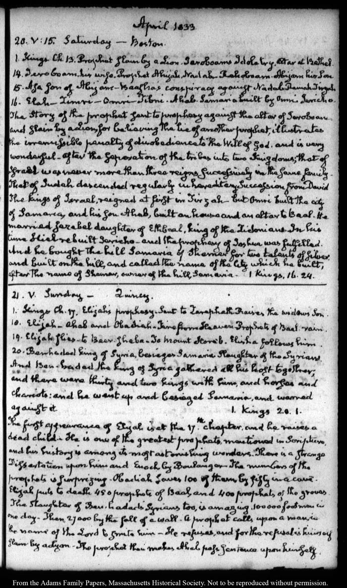 View full, authoritative transcriptions with page images of the diaries at John Quincy Adams Digital Diary part of the Primary Source Cooperative at the MHS.