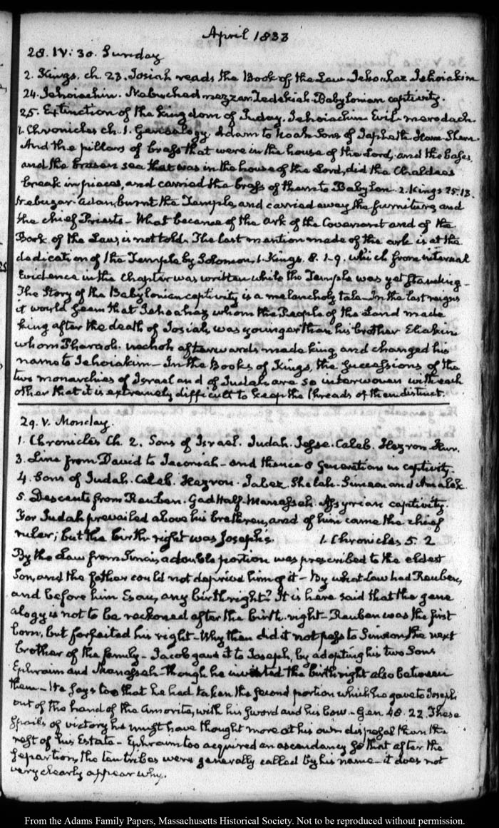 View full, authoritative transcriptions with page images of the diaries at John Quincy Adams Digital Diary part of the Primary Source Cooperative at the MHS.