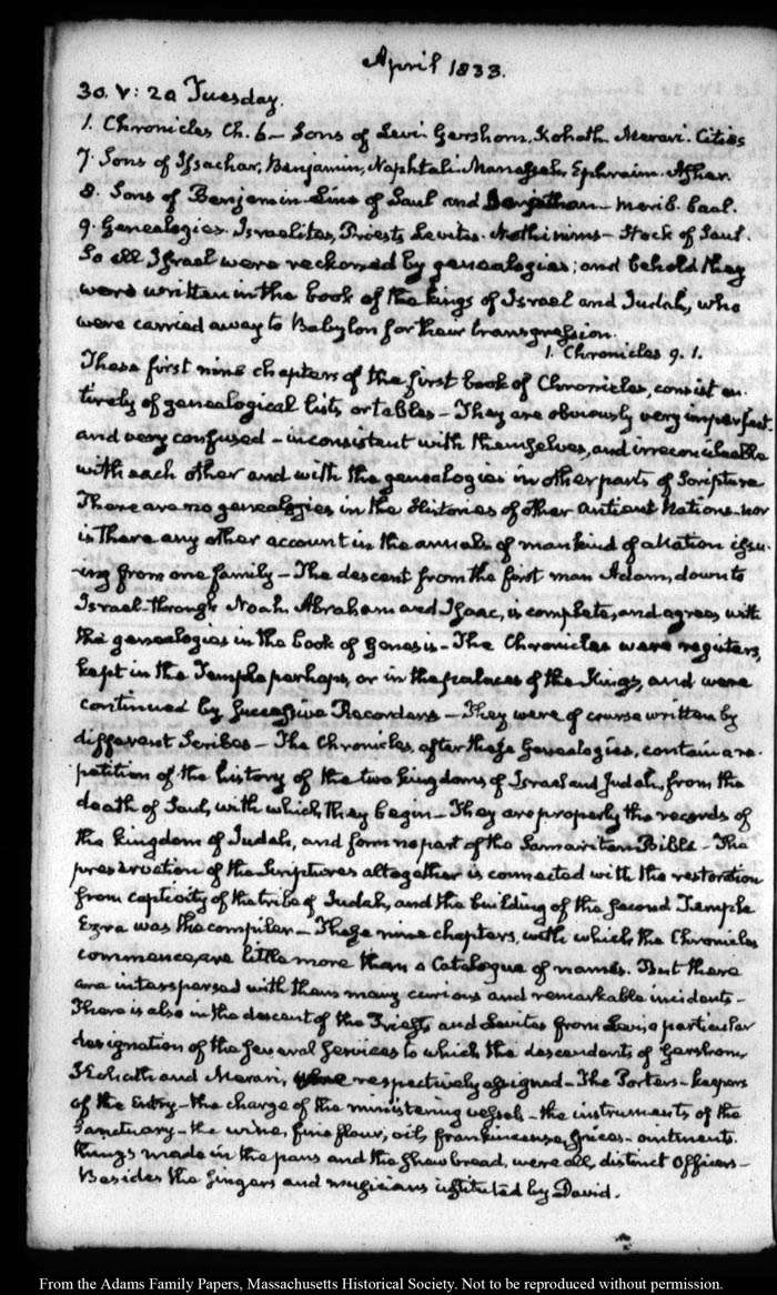 View full, authoritative transcriptions with page images of the diaries at John Quincy Adams Digital Diary part of the Primary Source Cooperative at the MHS.