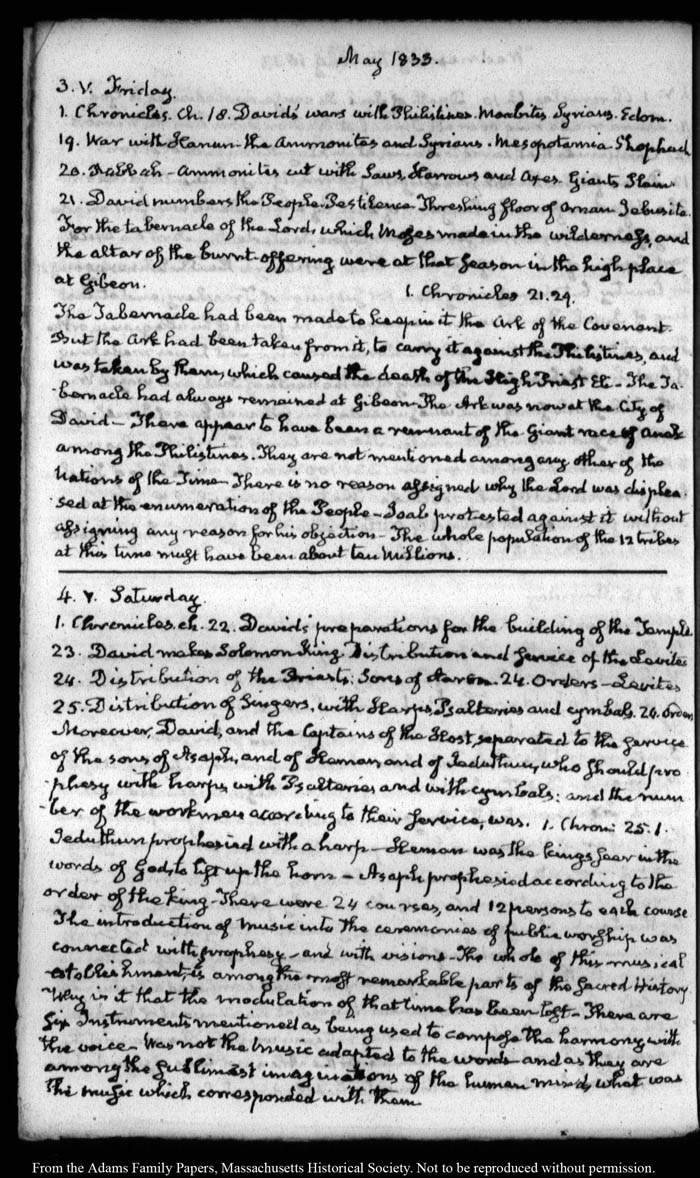 View full, authoritative transcriptions with page images of the diaries at John Quincy Adams Digital Diary part of the Primary Source Cooperative at the MHS.