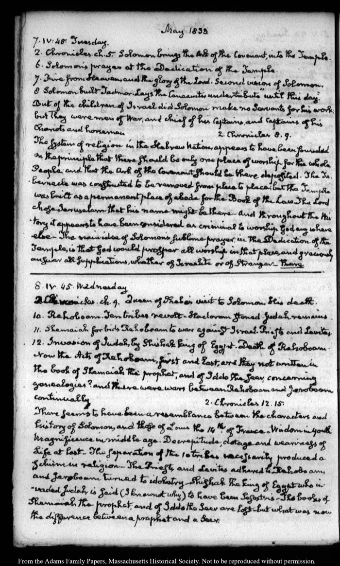 This is our legacy JQA diaries website and allows researchers to view the physical diaries page-by-page.