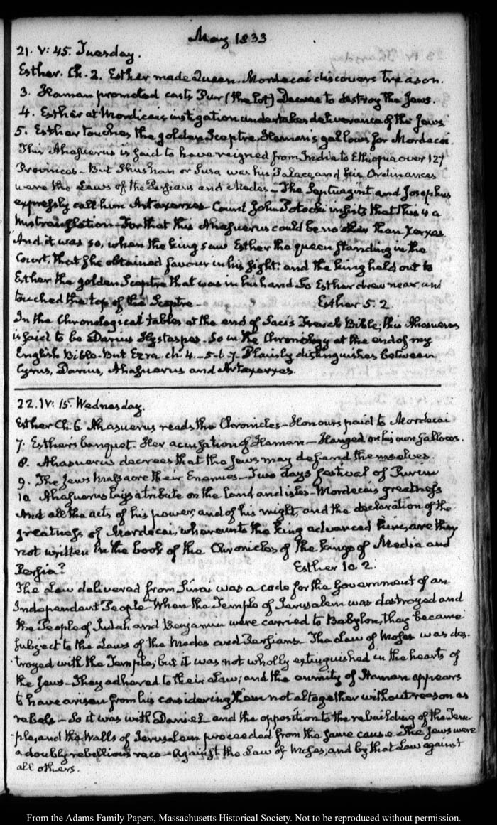 View full, authoritative transcriptions with page images of the diaries at John Quincy Adams Digital Diary part of the Primary Source Cooperative at the MHS.