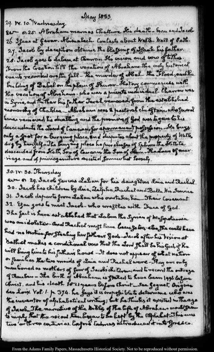 View full, authoritative transcriptions with page images of the diaries at John Quincy Adams Digital Diary part of the Primary Source Cooperative at the MHS.