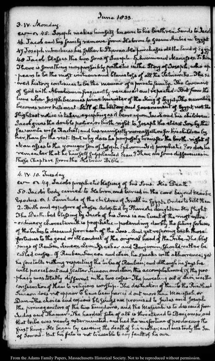 View full, authoritative transcriptions with page images of the diaries at John Quincy Adams Digital Diary part of the Primary Source Cooperative at the MHS.