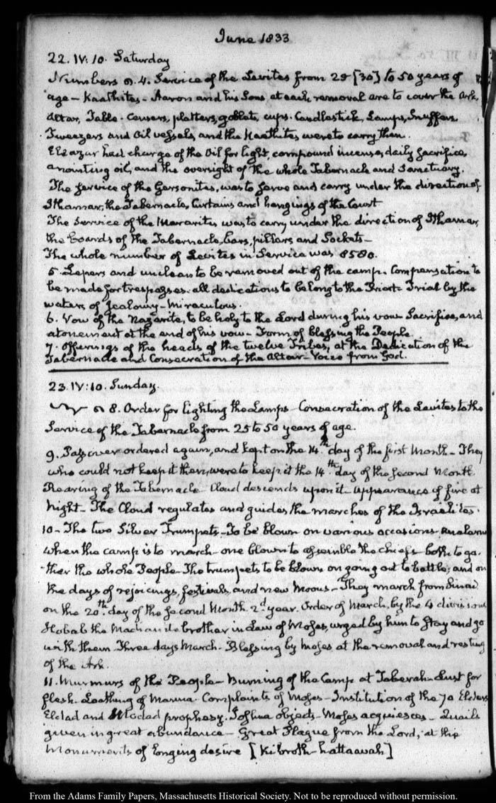 View full, authoritative transcriptions with page images of the diaries at John Quincy Adams Digital Diary part of the Primary Source Cooperative at the MHS.