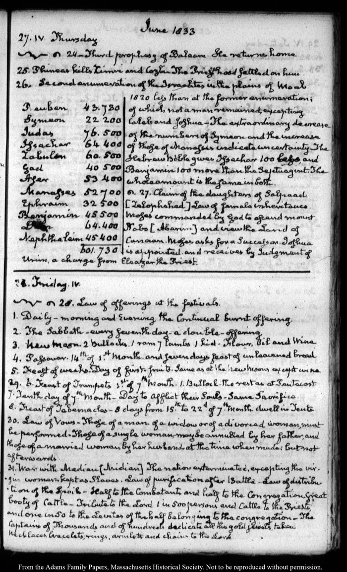 View full, authoritative transcriptions with page images of the diaries at John Quincy Adams Digital Diary part of the Primary Source Cooperative at the MHS.