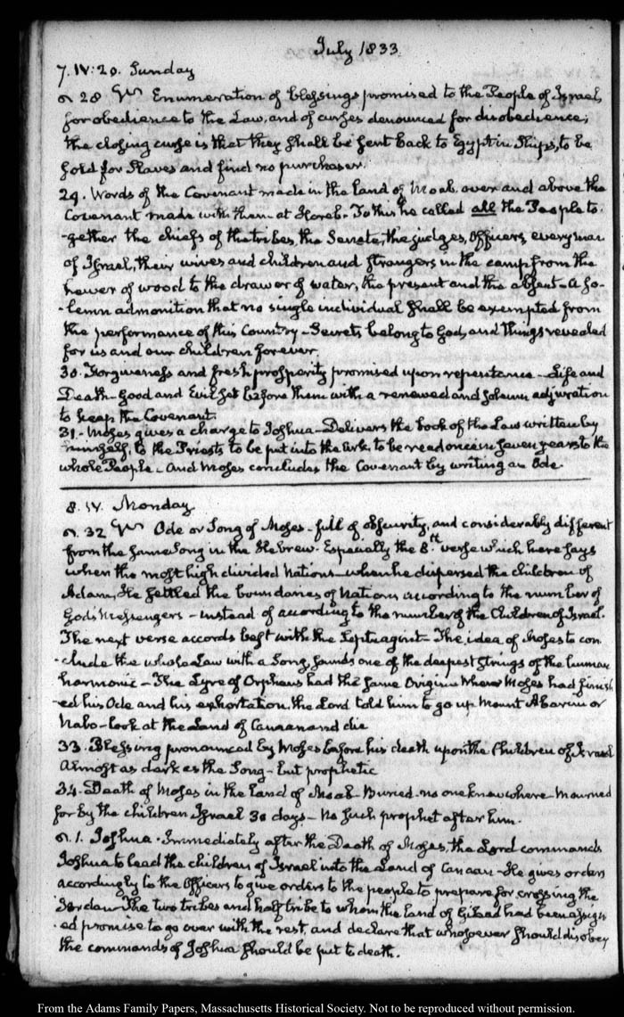 View full, authoritative transcriptions with page images of the diaries at John Quincy Adams Digital Diary part of the Primary Source Cooperative at the MHS.
