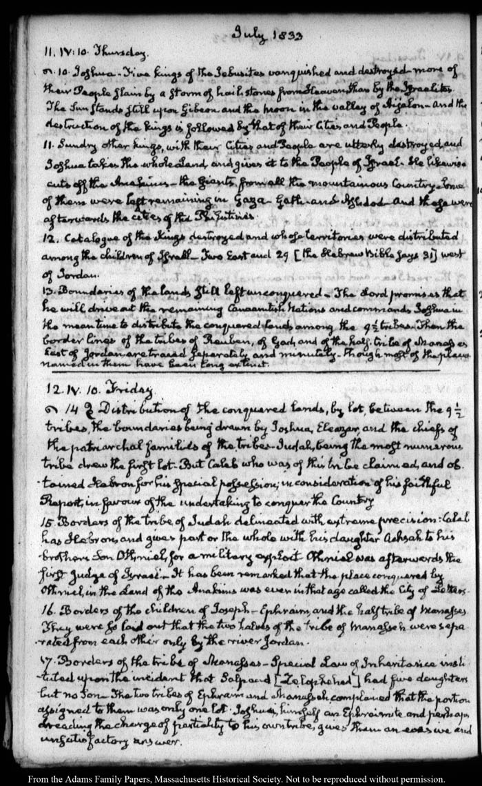 View full, authoritative transcriptions with page images of the diaries at John Quincy Adams Digital Diary part of the Primary Source Cooperative at the MHS.