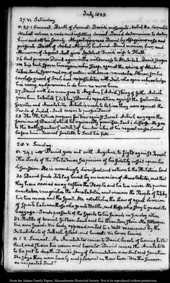 View full, authoritative transcriptions with page images of the diaries at John Quincy Adams Digital Diary part of the Primary Source Cooperative at the MHS.