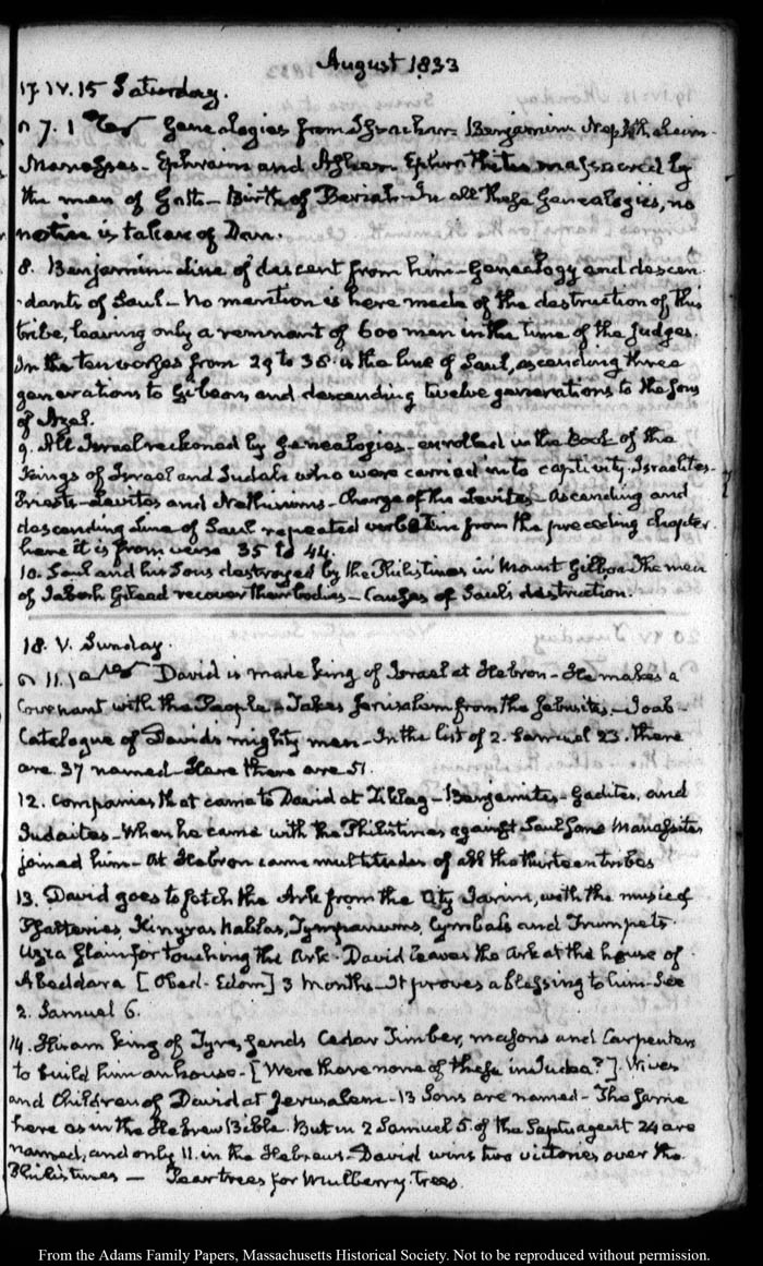 View full, authoritative transcriptions with page images of the diaries at John Quincy Adams Digital Diary part of the Primary Source Cooperative at the MHS.