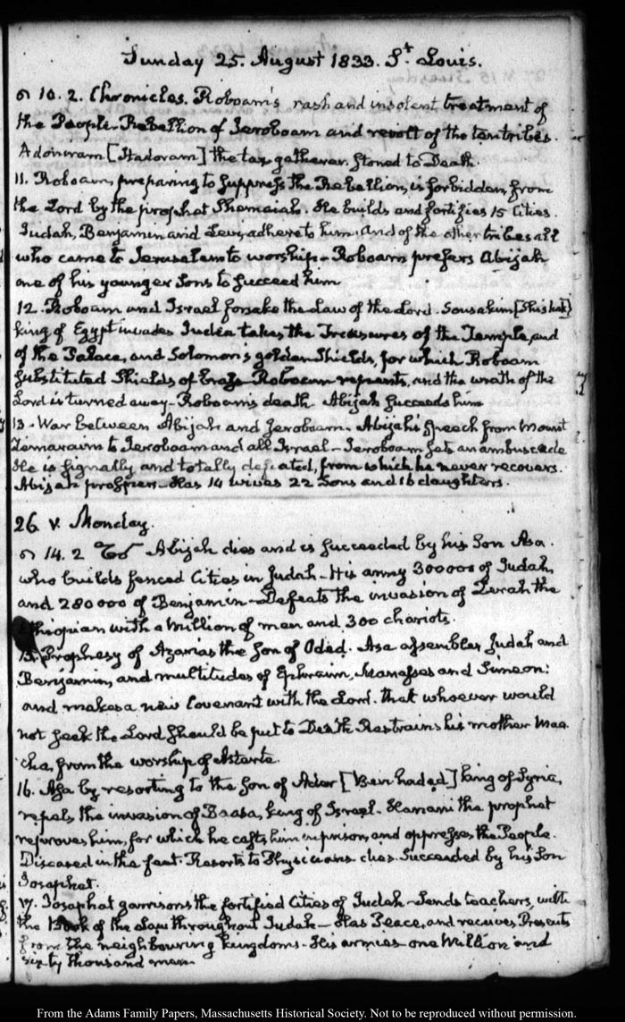 View full, authoritative transcriptions with page images of the diaries at John Quincy Adams Digital Diary part of the Primary Source Cooperative at the MHS.