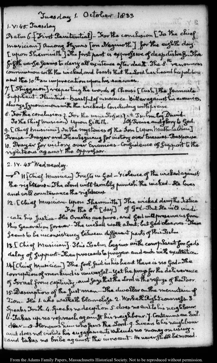 View full, authoritative transcriptions with page images of the diaries at John Quincy Adams Digital Diary part of the Primary Source Cooperative at the MHS.
