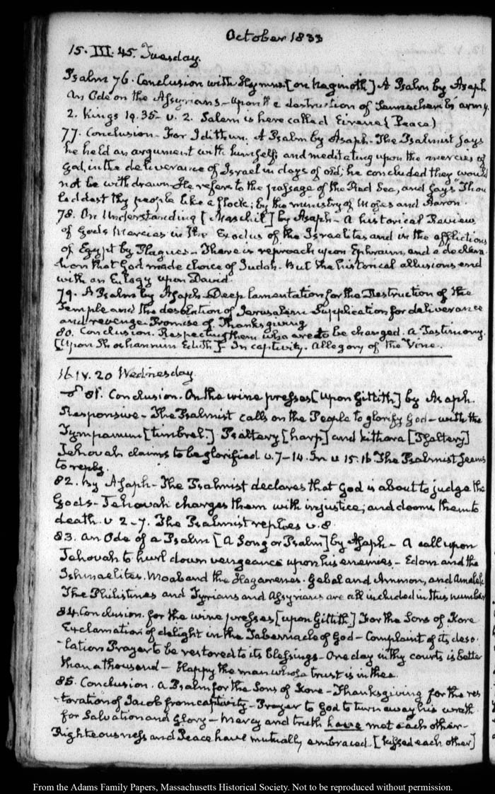 View full, authoritative transcriptions with page images of the diaries at John Quincy Adams Digital Diary part of the Primary Source Cooperative at the MHS.