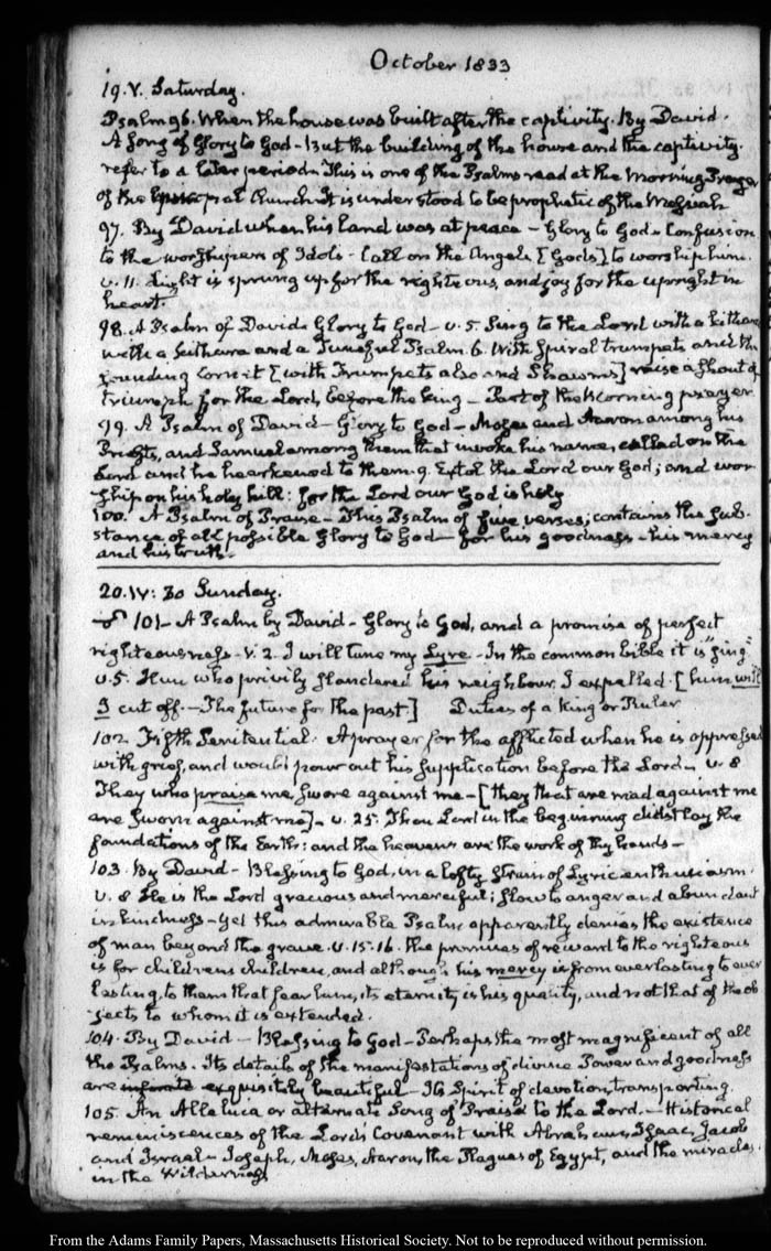 View full, authoritative transcriptions with page images of the diaries at John Quincy Adams Digital Diary part of the Primary Source Cooperative at the MHS.