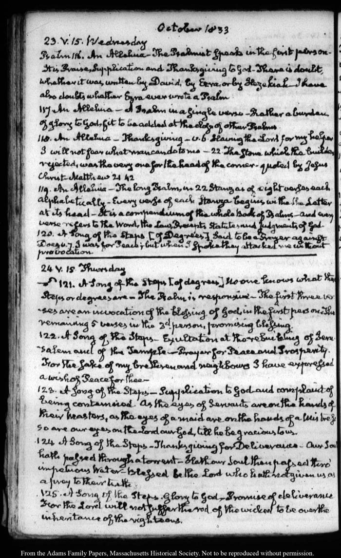View full, authoritative transcriptions with page images of the diaries at John Quincy Adams Digital Diary part of the Primary Source Cooperative at the MHS.