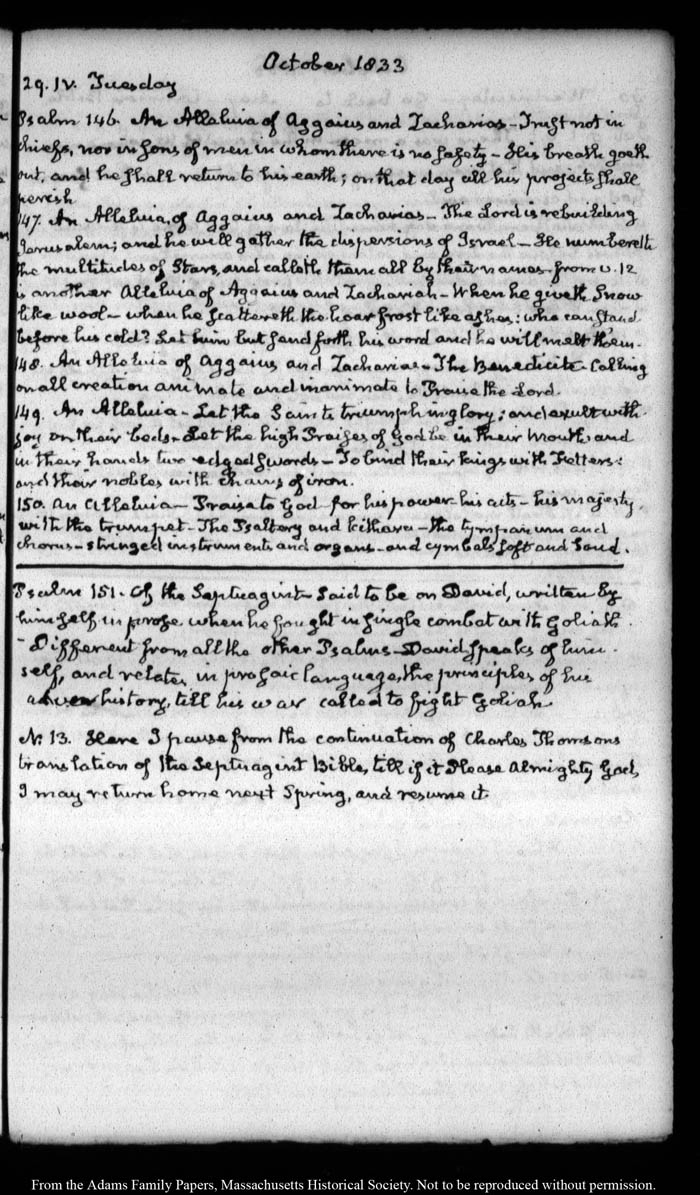 View full, authoritative transcriptions with page images of the diaries at John Quincy Adams Digital Diary part of the Primary Source Cooperative at the MHS.