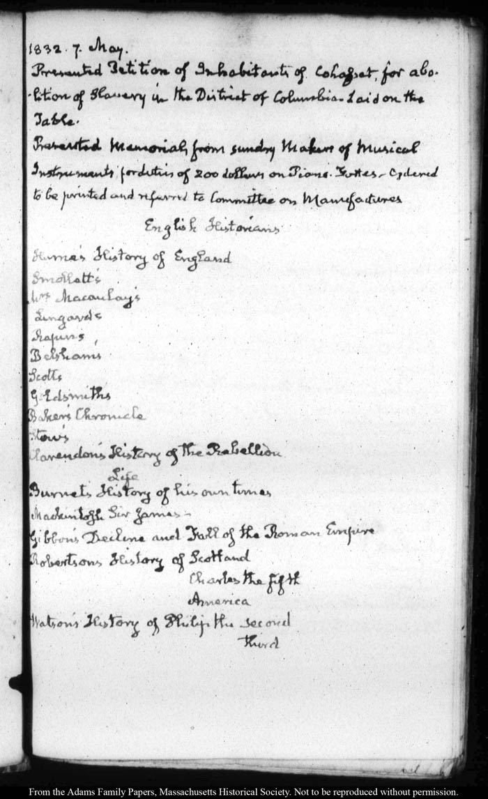 View full, authoritative transcriptions with page images of the diaries at John Quincy Adams Digital Diary part of the Primary Source Cooperative at the MHS.