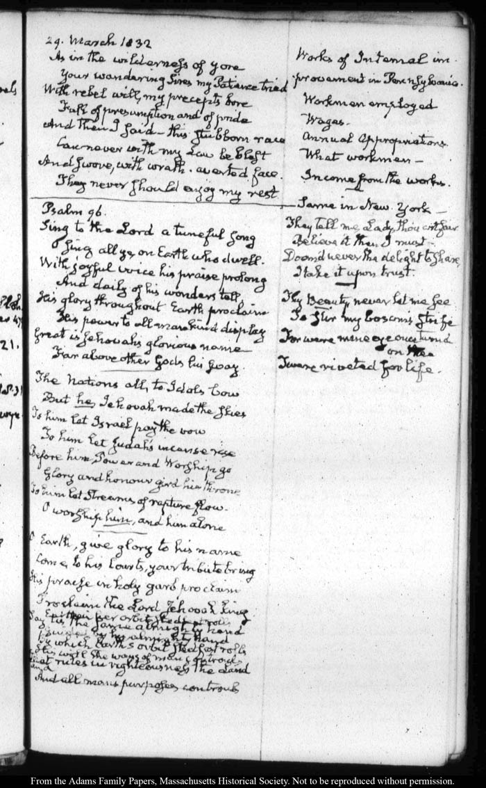 View full, authoritative transcriptions with page images of the diaries at John Quincy Adams Digital Diary part of the Primary Source Cooperative at the MHS.