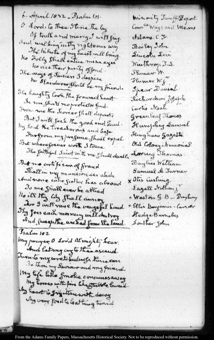 View full, authoritative transcriptions with page images of the diaries at John Quincy Adams Digital Diary part of the Primary Source Cooperative at the MHS.