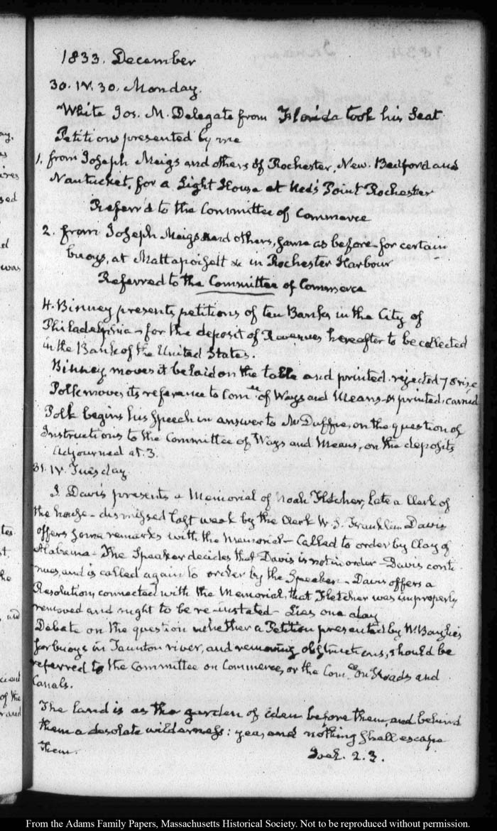 View full, authoritative transcriptions with page images of the diaries at John Quincy Adams Digital Diary part of the Primary Source Cooperative at the MHS.