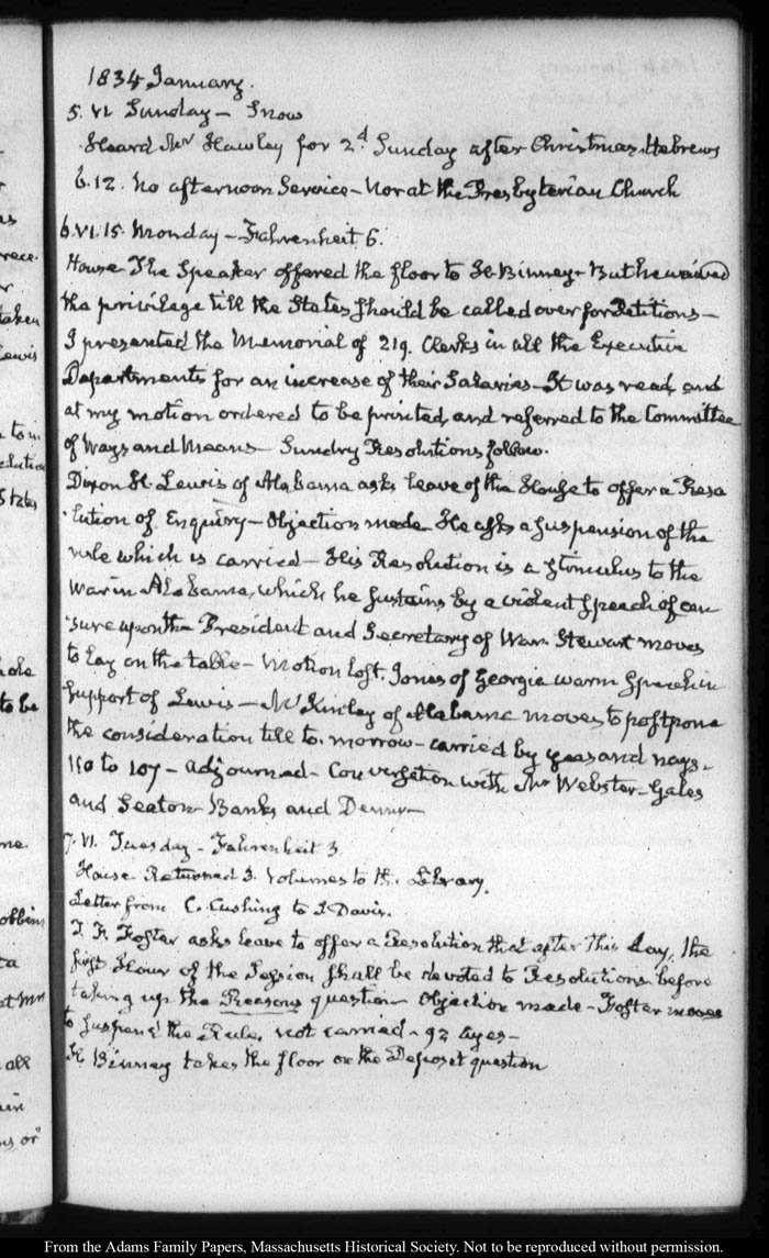 View full, authoritative transcriptions with page images of the diaries at John Quincy Adams Digital Diary part of the Primary Source Cooperative at the MHS.