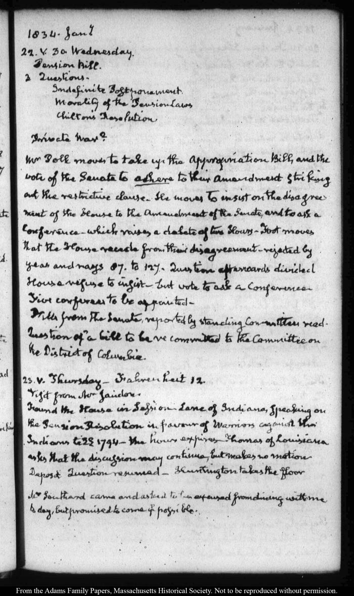 View full, authoritative transcriptions with page images of the diaries at John Quincy Adams Digital Diary part of the Primary Source Cooperative at the MHS.