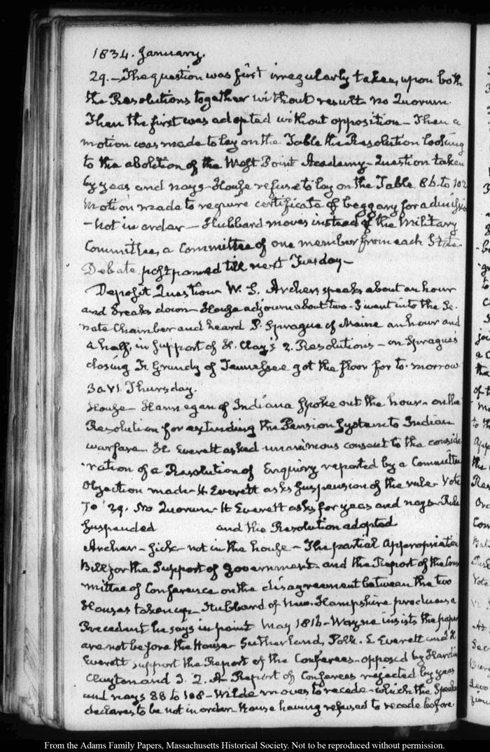 View full, authoritative transcriptions with page images of the diaries at John Quincy Adams Digital Diary part of the Primary Source Cooperative at the MHS.