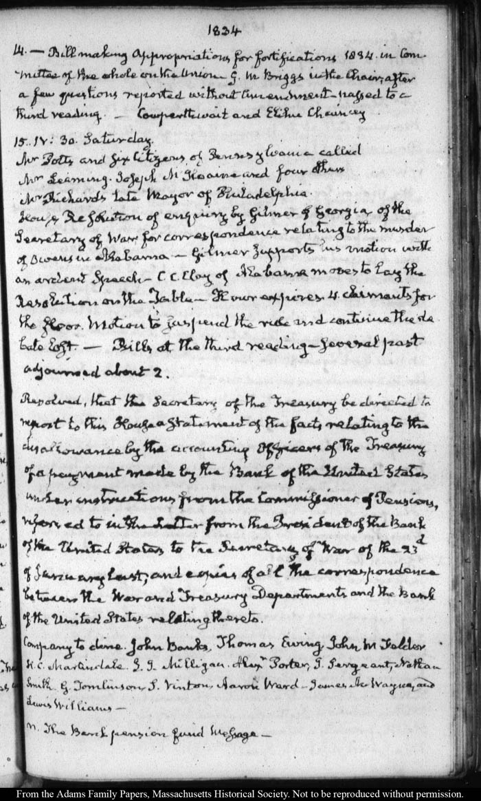 View full, authoritative transcriptions with page images of the diaries at John Quincy Adams Digital Diary part of the Primary Source Cooperative at the MHS.