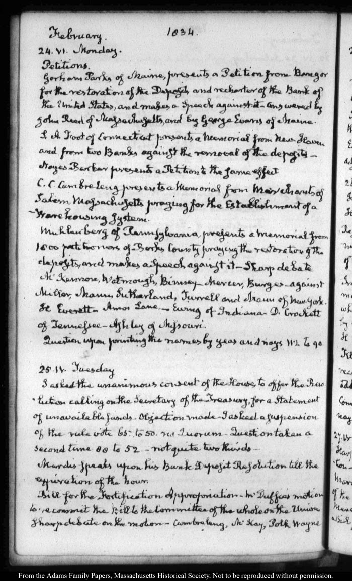 View full, authoritative transcriptions with page images of the diaries at John Quincy Adams Digital Diary part of the Primary Source Cooperative at the MHS.