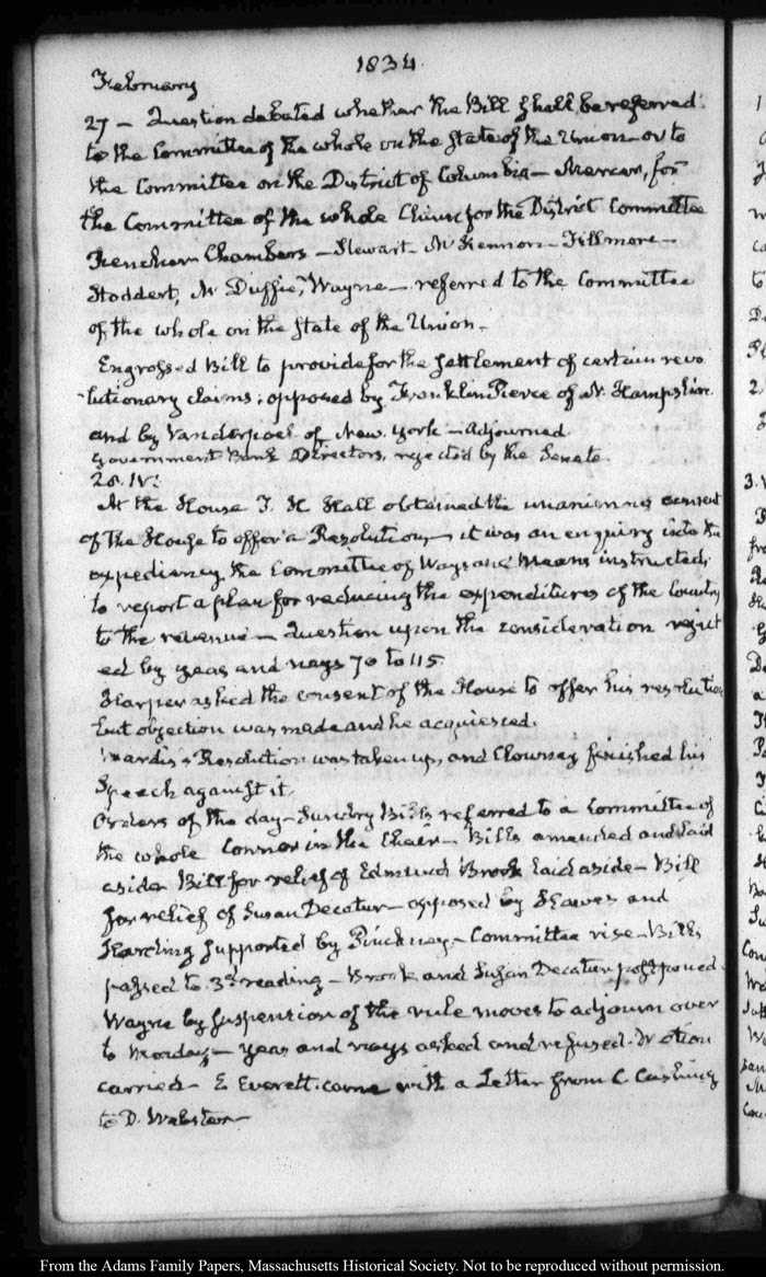 View full, authoritative transcriptions with page images of the diaries at John Quincy Adams Digital Diary part of the Primary Source Cooperative at the MHS.
