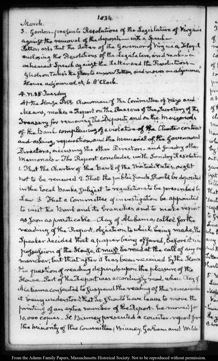View full, authoritative transcriptions with page images of the diaries at John Quincy Adams Digital Diary part of the Primary Source Cooperative at the MHS.