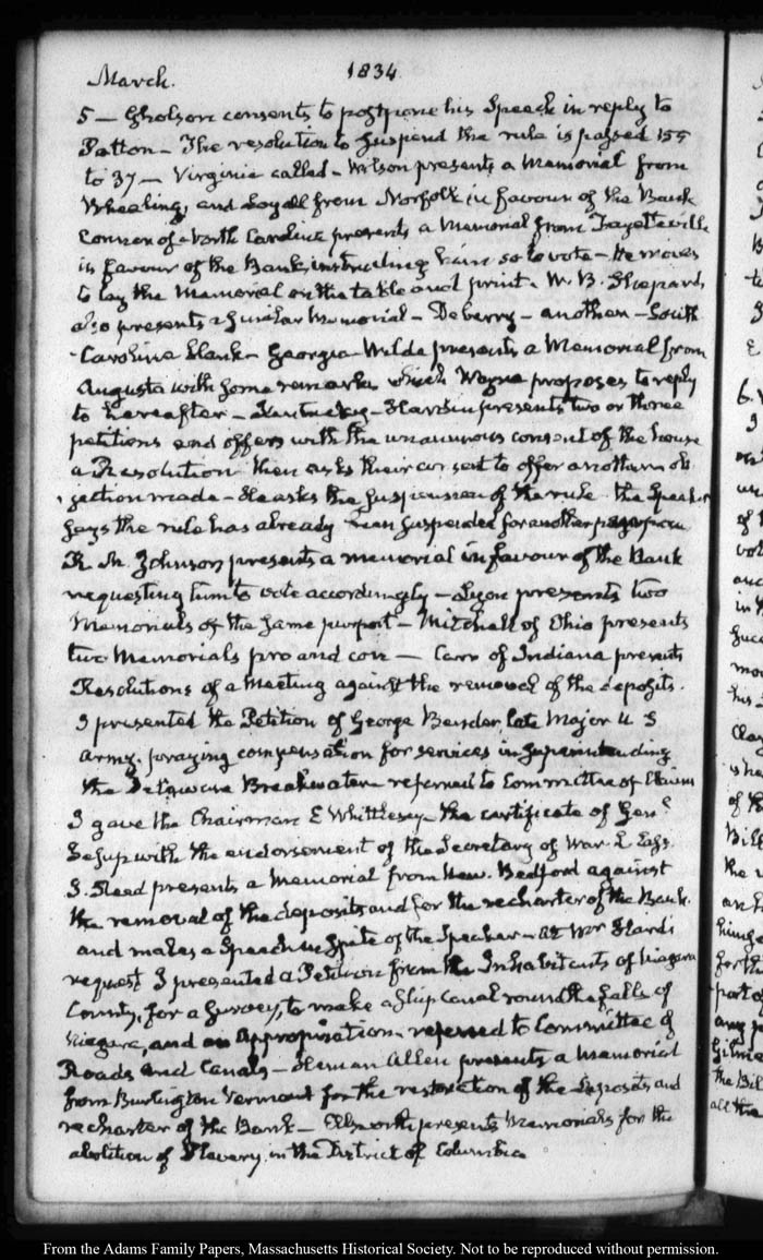 View full, authoritative transcriptions with page images of the diaries at John Quincy Adams Digital Diary part of the Primary Source Cooperative at the MHS.