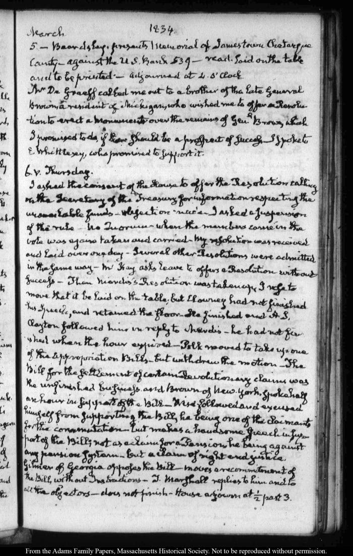 View full, authoritative transcriptions with page images of the diaries at John Quincy Adams Digital Diary part of the Primary Source Cooperative at the MHS.