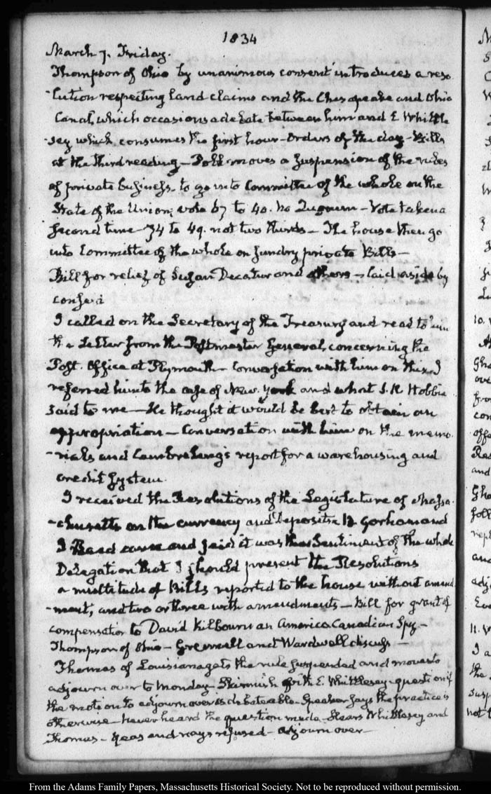 View full, authoritative transcriptions with page images of the diaries at John Quincy Adams Digital Diary part of the Primary Source Cooperative at the MHS.