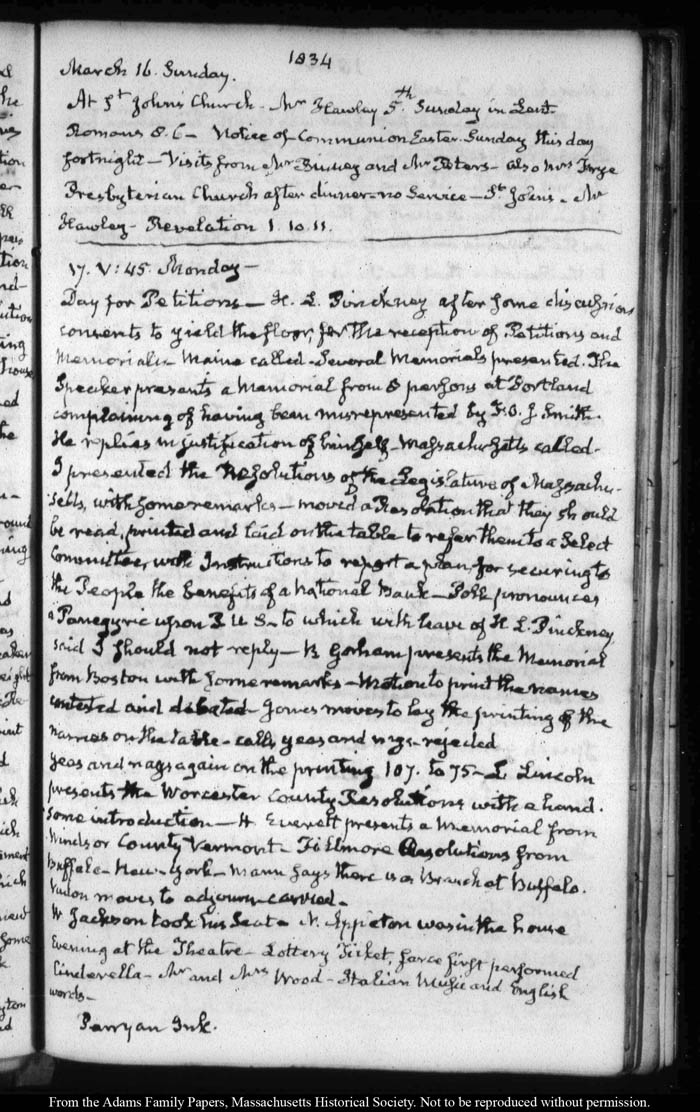 View full, authoritative transcriptions with page images of the diaries at John Quincy Adams Digital Diary part of the Primary Source Cooperative at the MHS.
