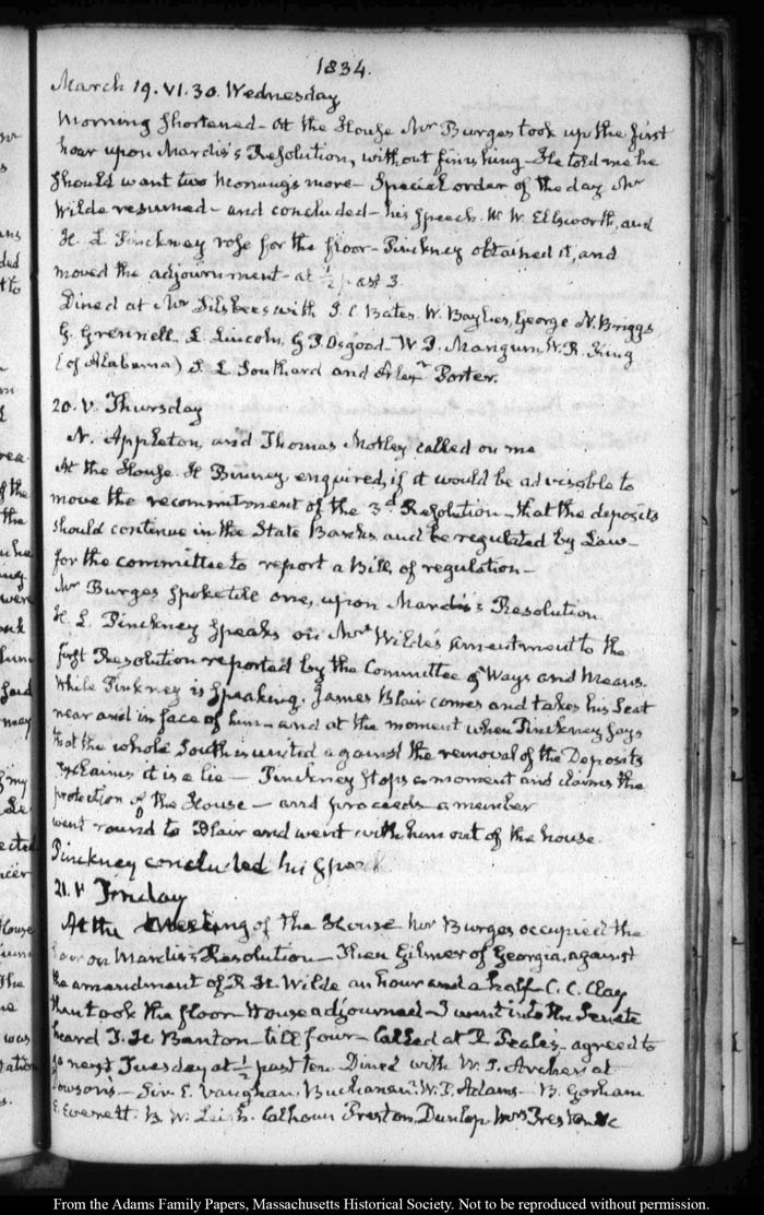 View full, authoritative transcriptions with page images of the diaries at John Quincy Adams Digital Diary part of the Primary Source Cooperative at the MHS.