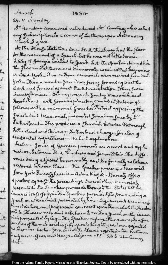 View full, authoritative transcriptions with page images of the diaries at John Quincy Adams Digital Diary part of the Primary Source Cooperative at the MHS.