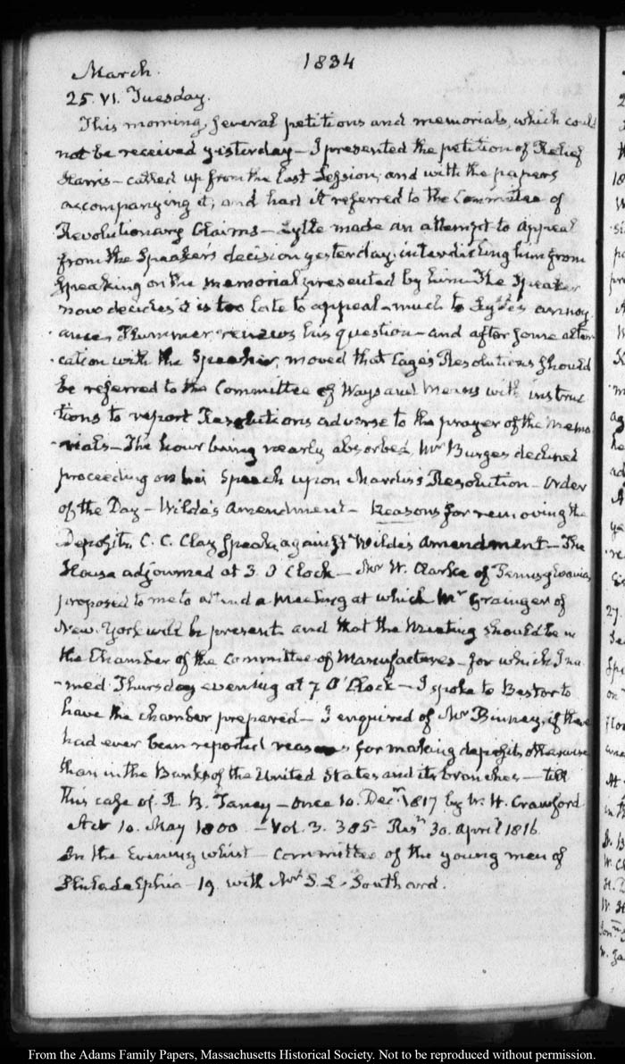 View full, authoritative transcriptions with page images of the diaries at John Quincy Adams Digital Diary part of the Primary Source Cooperative at the MHS.