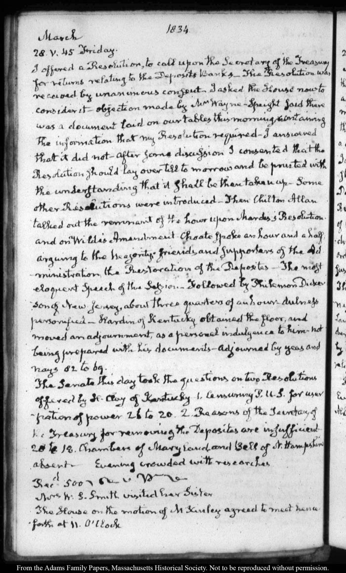 View full, authoritative transcriptions with page images of the diaries at John Quincy Adams Digital Diary part of the Primary Source Cooperative at the MHS.