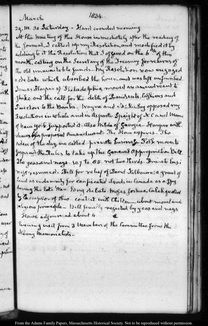 View full, authoritative transcriptions with page images of the diaries at John Quincy Adams Digital Diary part of the Primary Source Cooperative at the MHS.