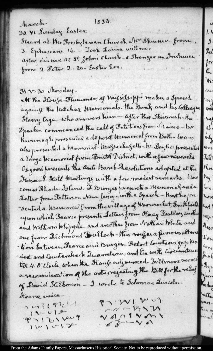 View full, authoritative transcriptions with page images of the diaries at John Quincy Adams Digital Diary part of the Primary Source Cooperative at the MHS.